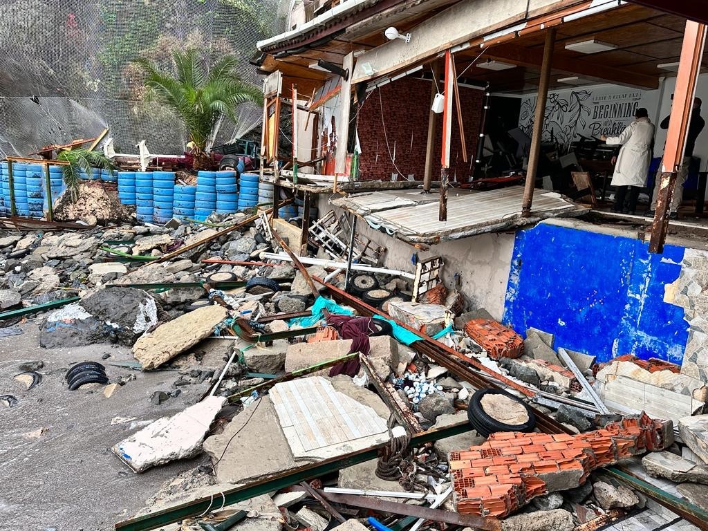 Barınaklar ve restoranlar dev dalgaların da etkisiyle yerle bir olmuştu. Dev dalgaların etkisiyle sahildeki betonların ve asfaltın da yerinden söküldüğü görüldü. Fırtınanın ve dev dalgaların etkisiyle yerle bir olan barınaklar ve restoranlar havadan görüntülendi. Dükkanı zarar gören Ramazan Kurt, mağdur olduklarını belirtti.