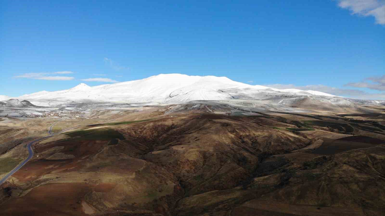 Bitlis’in Tatvan ilçesinde yer alan ve zirvesinde Dünya’nın ikinci büyük krater gölü bulunan Nemrut Kalderası yağan karla beyaz gelinliğini giydi.