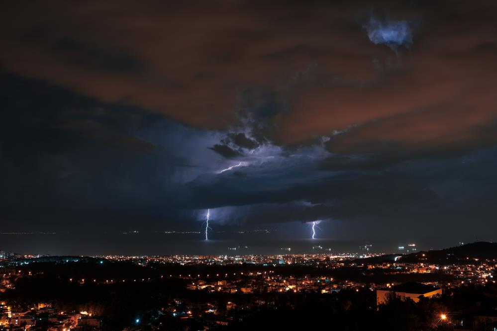 İskenderun Körfezindeki şimşek fırtınası ortaya seyirlik görüntüler çıkardı