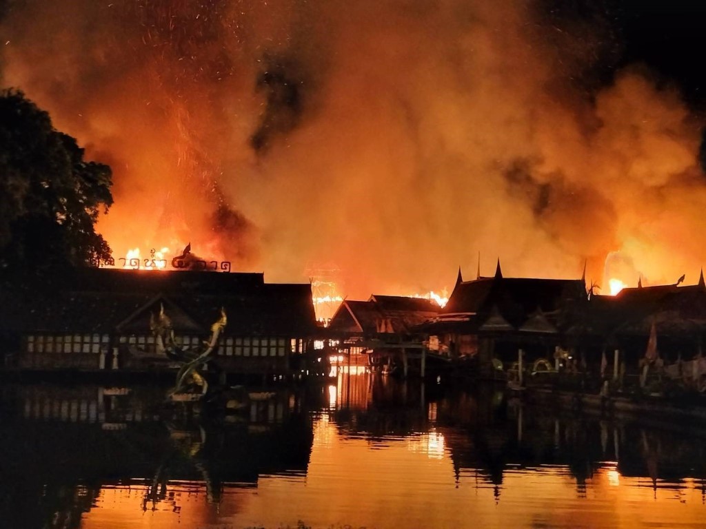 Taylandda yüzen çarşı alev alev yandı
