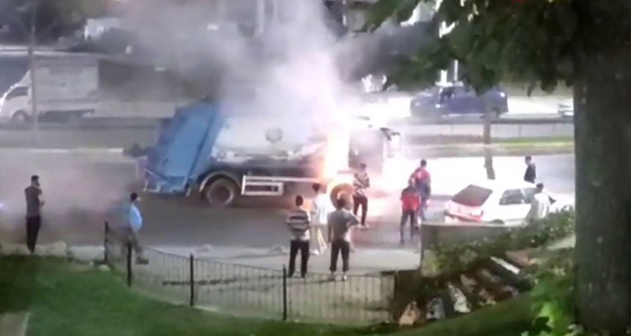 Sultangazide seyir halindeki çöp kamyonu alev alev yandı
