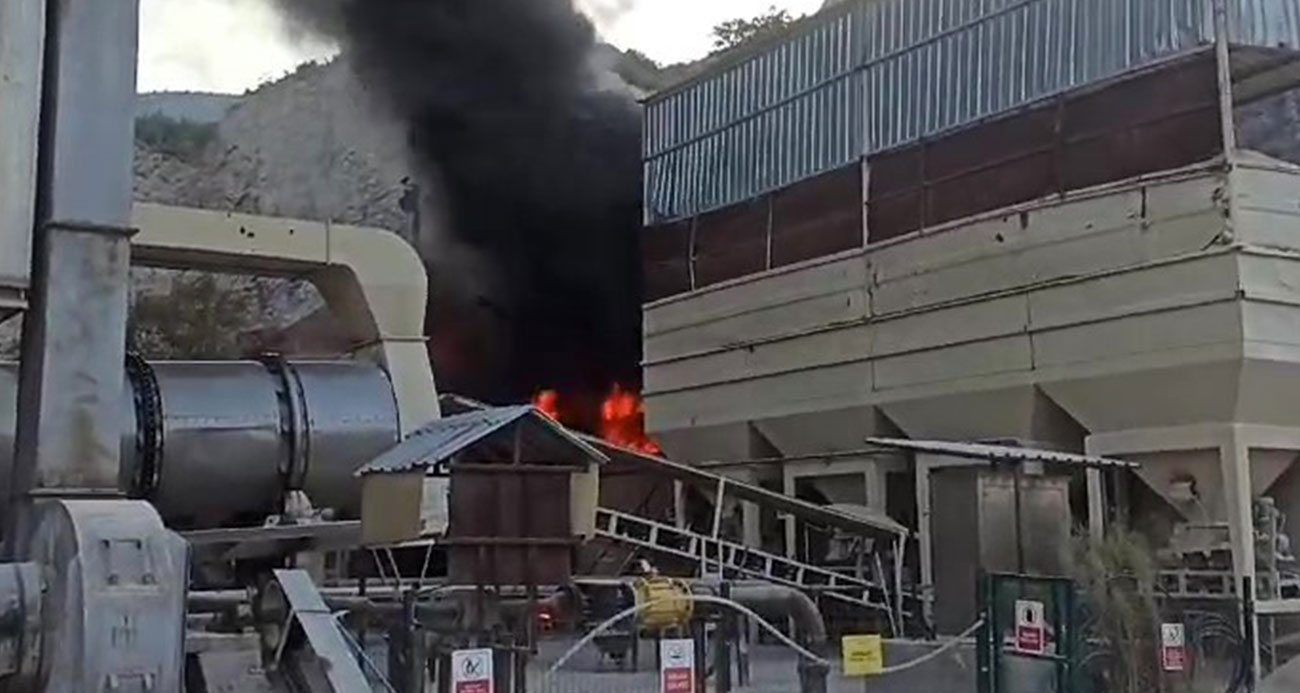 Amasyada asfalt şantiyesinde korkutan yangın