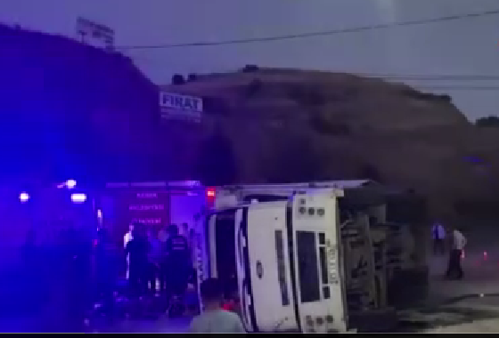 Virajı alamayan kamyon yan yattı 5 yaralı