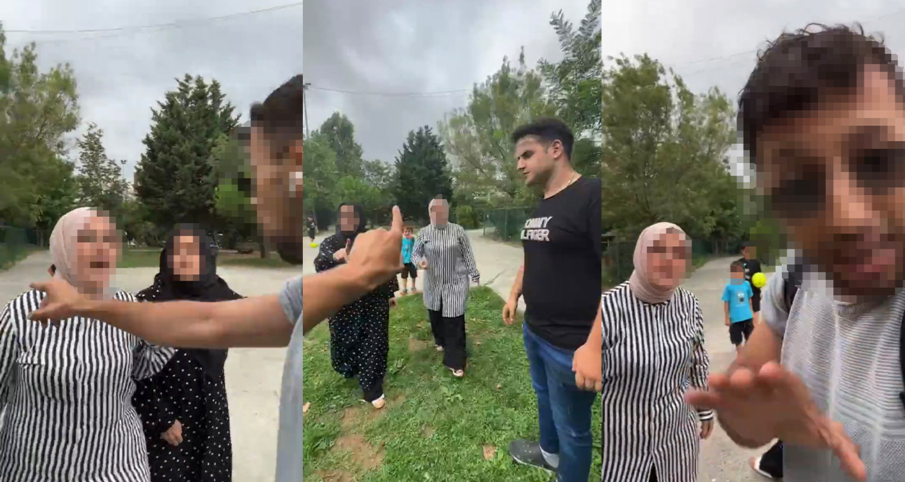 İstanbul da parkta köpeğe top attın kavgası kamerada Türbanından utan diyerek aşağıladı