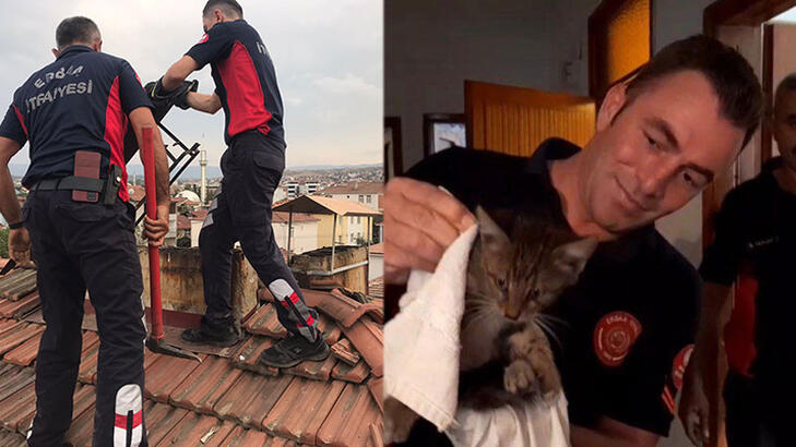 Tokatta baca deliğine düşen yavru kediyi itfaiye kurtardı