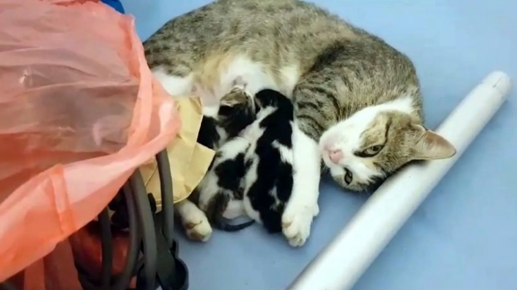 Anne kedinin yavruları için yaptığı fedakarlık duygulandırdı