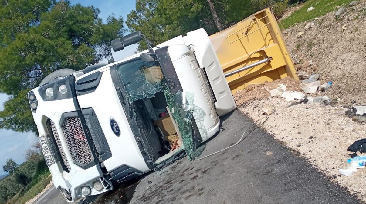 Devrilen kamyonun sürücüsü yaralandı