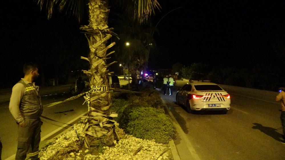 Hafif ticari araç palmiye ağacına ve aydınlatma direğine çarptı 2 ölü