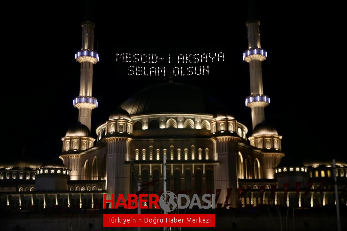 Taksim Camiine Mescidi Aksaya selam olsun mahyası asıldı
