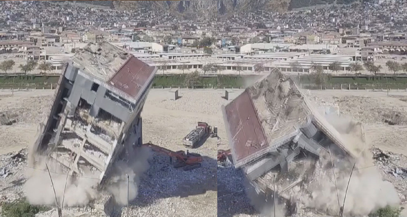 İş makinasının dokunuşuyla bina yerle bir oldu