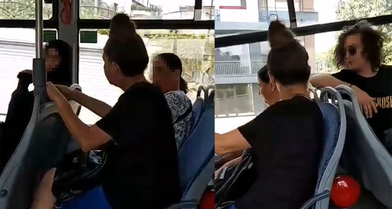 Tesettürlü kadına otobüste çirkin saldırı Peçeni al git