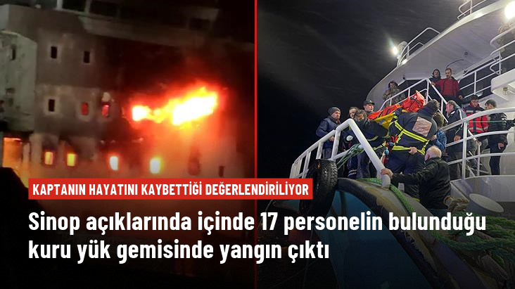 Sinop açıklarında 17 personelin bulunduğu kuru yük gemisinde yangın çıktı