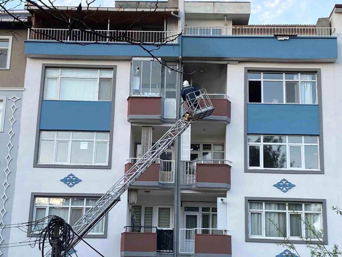 Yangına müdahale eden itfaiyenin merdiveni düştü