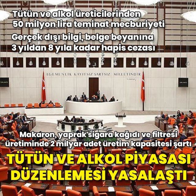 Tütün tütün mamulleri ve alkol piyasasına ilişkin teklif TBMM Genel Kurulu nda kabul edildi