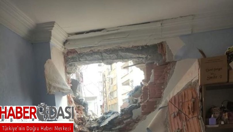 Beylikdüzünde yıkım sırasında yan binanın duvarı yıkıldı